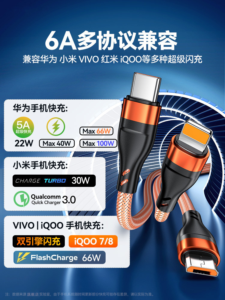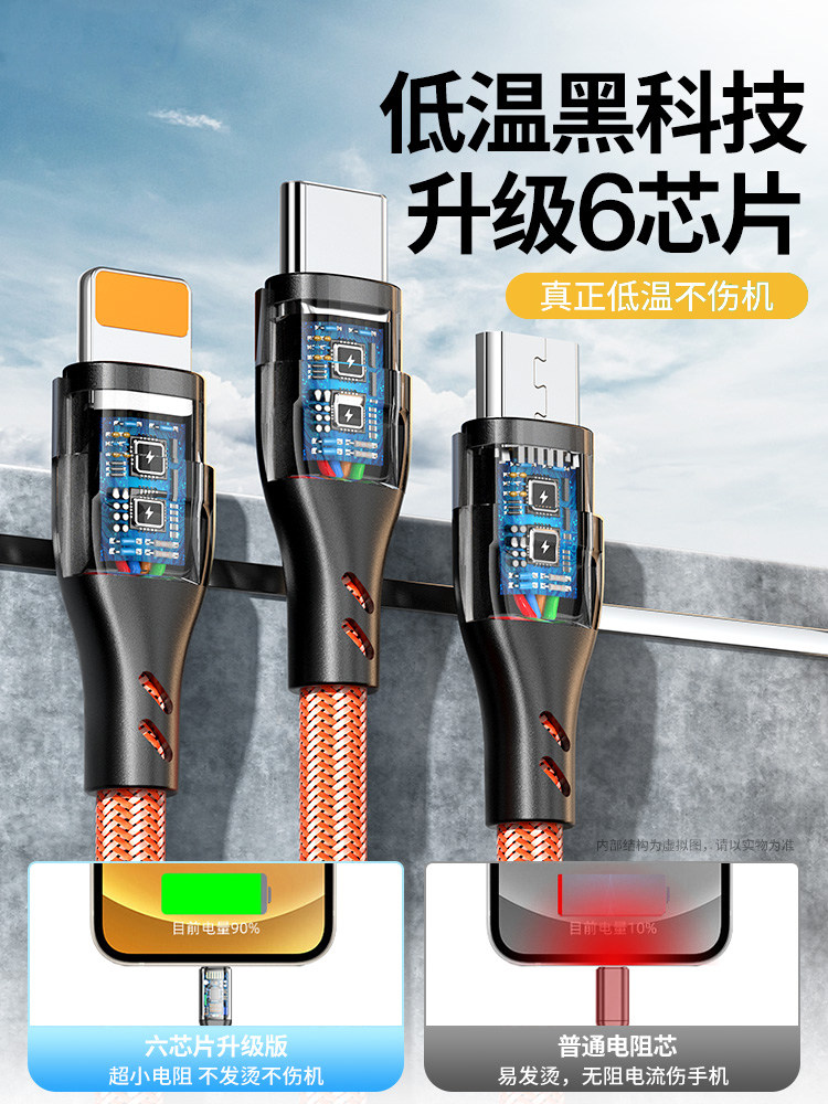 Mobile phone charger One drag three quick charging three-in-one bulls are suitable for Huawei super fast charging 66W Xiaomi 18W glory 100W Android Apple General Vivo versatile charging wire head suit