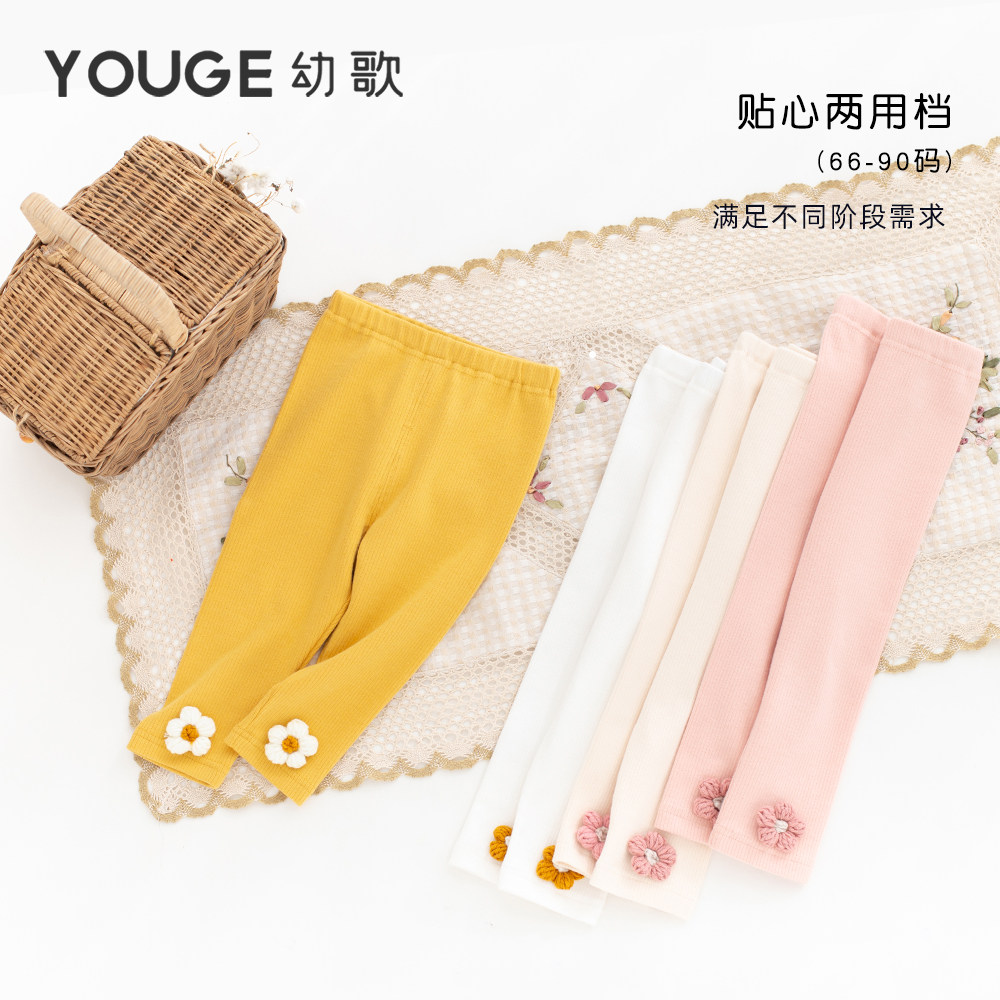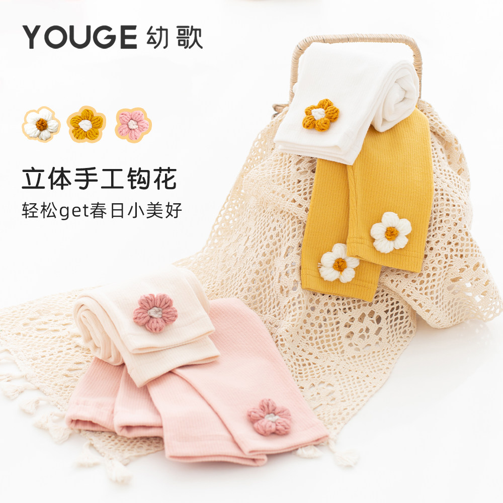 Youge young children's comfort 100 lap embroidered inner lap pants 2022 Spring autumn new baby's skin-friendly elastic trousers