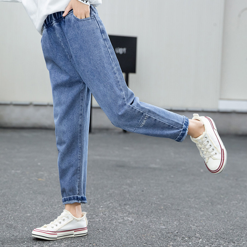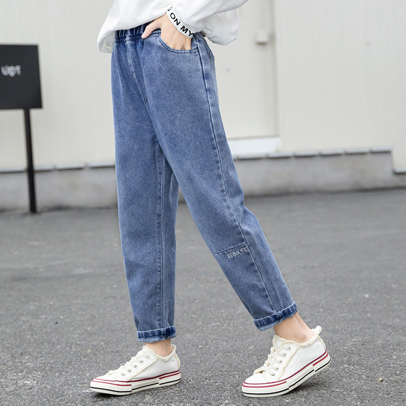 Girl Jeans 2022 New Foreign Spring Dress CUHK Child Han Version Loose Spring Autumn Money little girl Roof Pants Tide