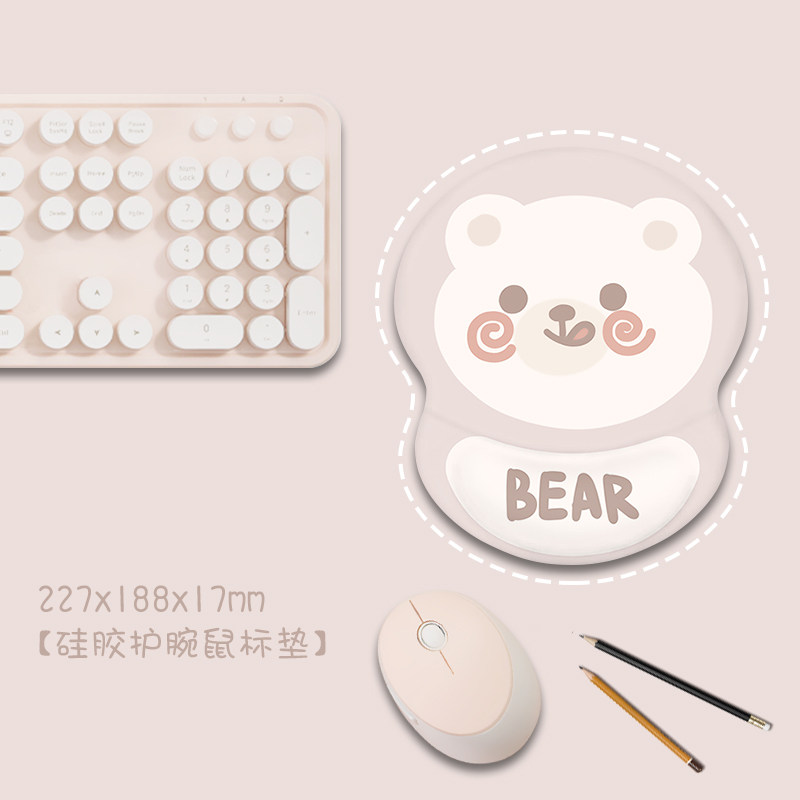 Shy Little Bear Slip Rat Cushion Wrist Cute Girls Ins Small wrist cushions Creative cartoon Silicone Comfortable Upholstered Hand memory cotton office Palm Care Computer Keyboard Depository Mouse Mat