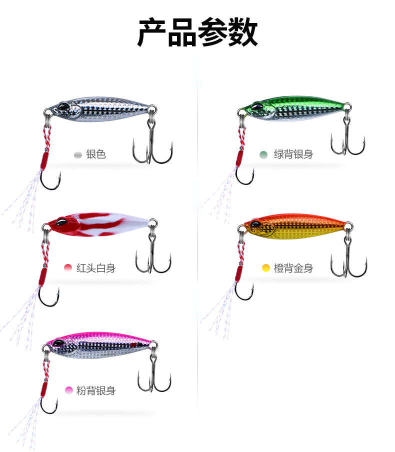 Red head and white body 5g 30mm red head and white body 9g 35mm red head and white body 12g 40mm red head and white body 15g 45mm green back silver body 5g 30mm green back silver