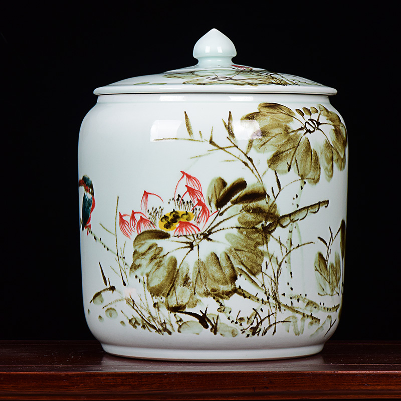 Jingdezhen Ceramic Ware Tea Leaves Jar Tea Cake Jar Storage Tank Large Wake Tea Home Rice Vat Oil Deposit Tea Big Jar
