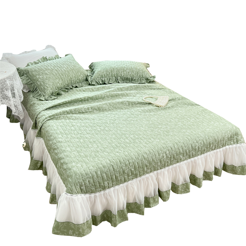 Pure Cotton Bed Cover All Season Universal Cotton 100 Tatami Pit Cover Korean Style Quilted Clips Cotton Non-slip Three-Type Bed Group