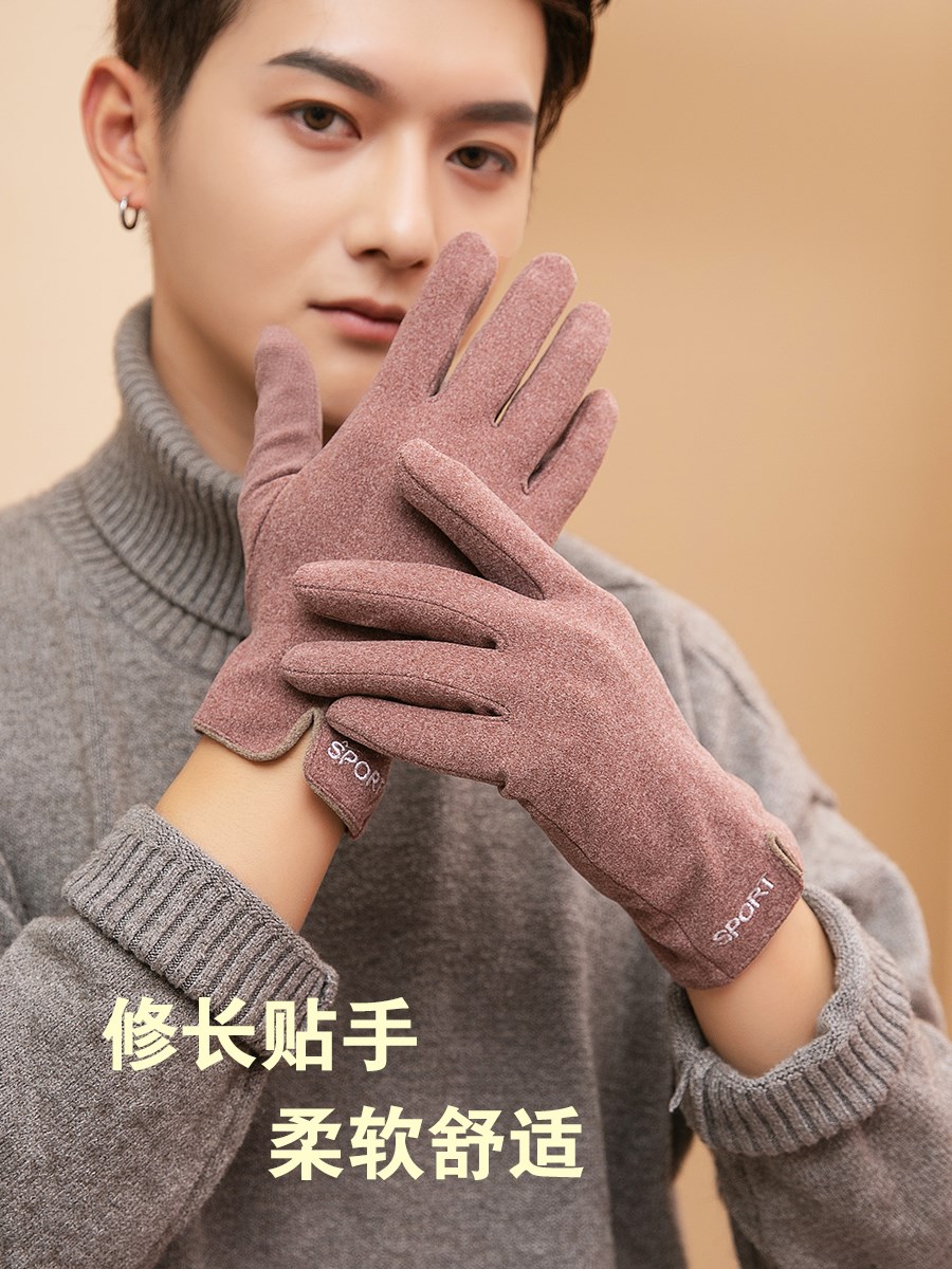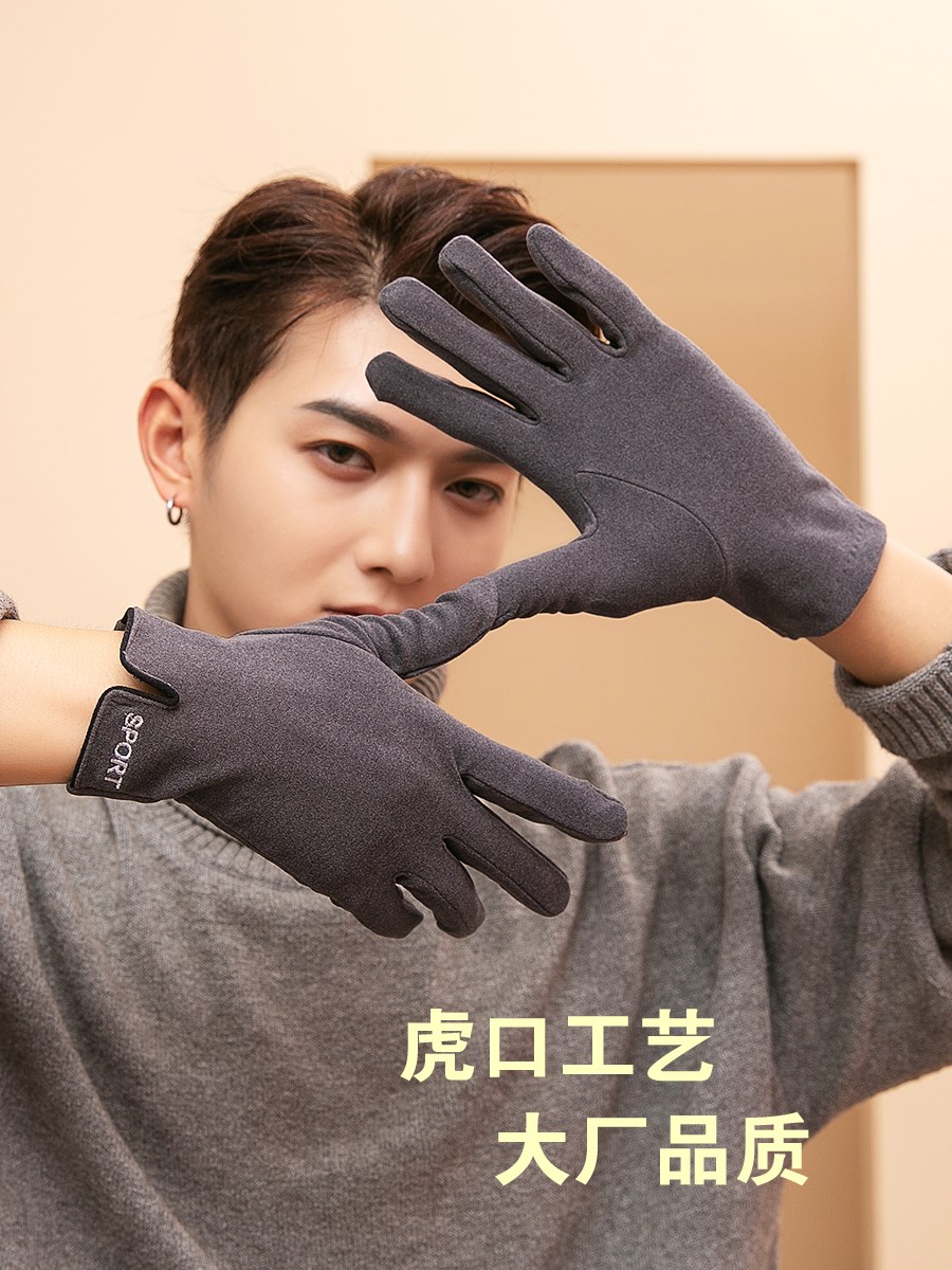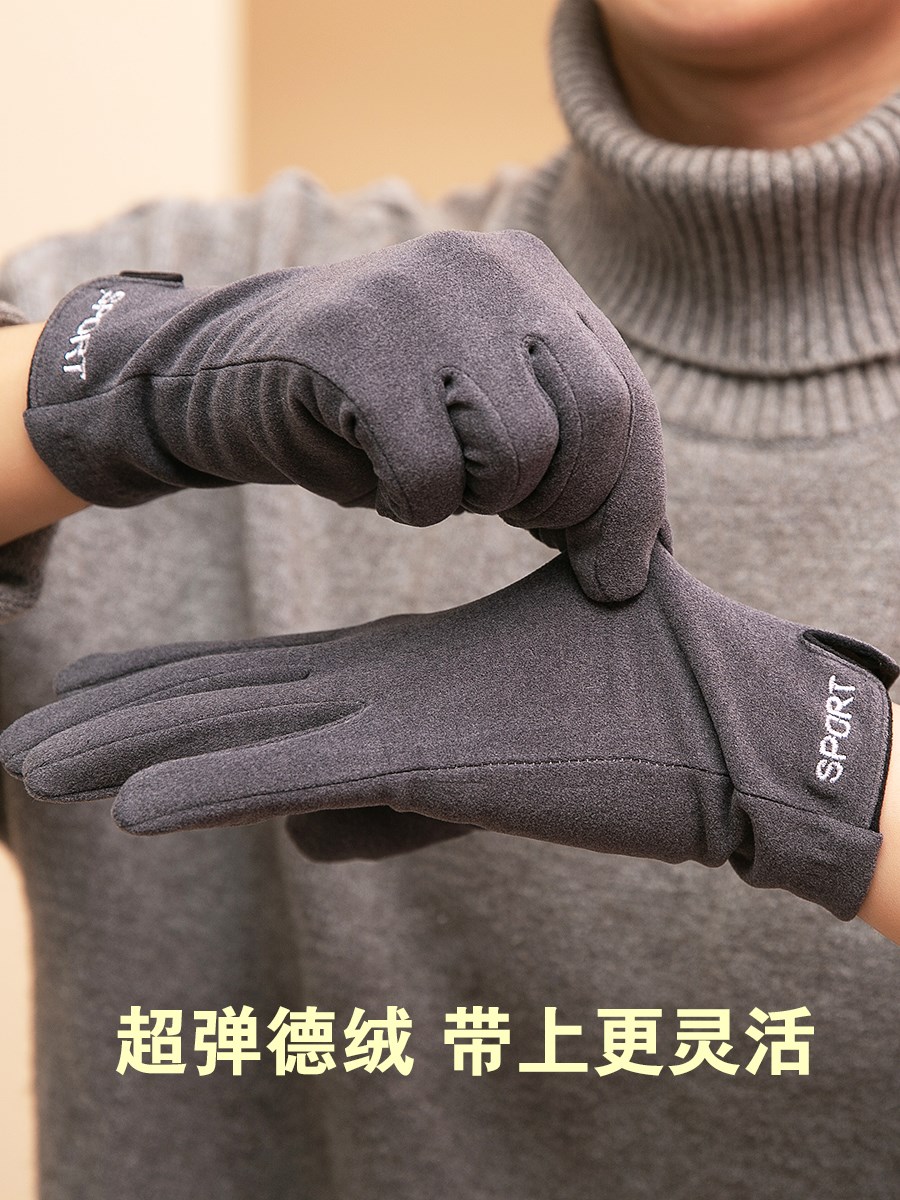 Gloves men's winter warm riding tide autumn and winter students cycling spring and autumn plus velvet thin section windproof driving touch screen