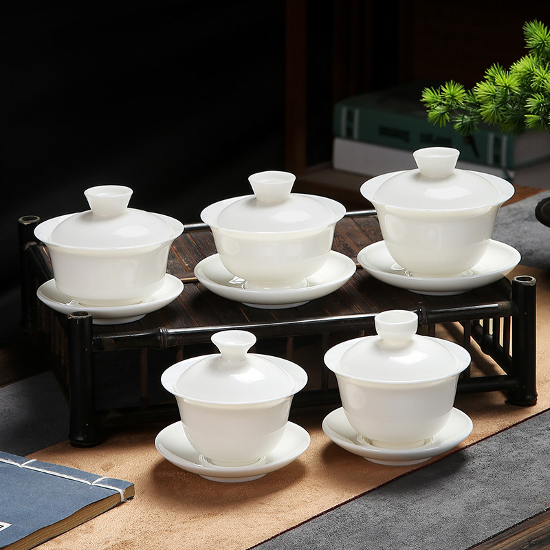 Tea Drinking Peak Ceramic Gong Fu Tea With Goat Fat Jade Porcelain Cover Bowl Defied White Porcelain Three Talents Bowl Chaoshan Kongfu Tea Bowl Porcelain Tea Preparation