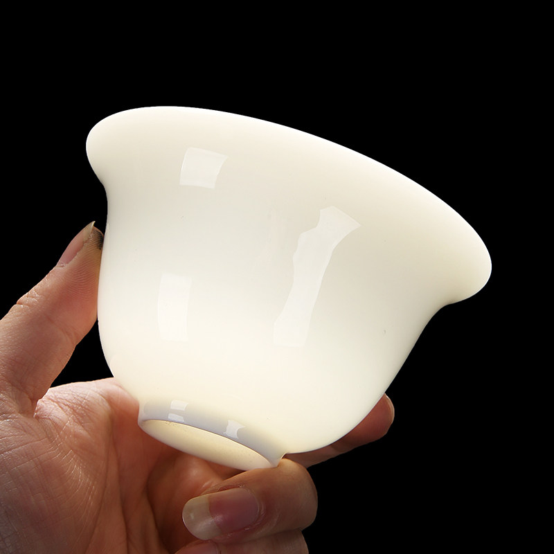 JXD white shepherd jade porcelain 3 4 inch lotus heart cover bowl (about 100ml) JXD white goat fat jade porcelain 3 5 inch lotus heart cover bowl (about 110ml) JXD white