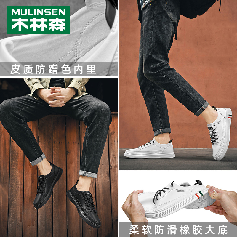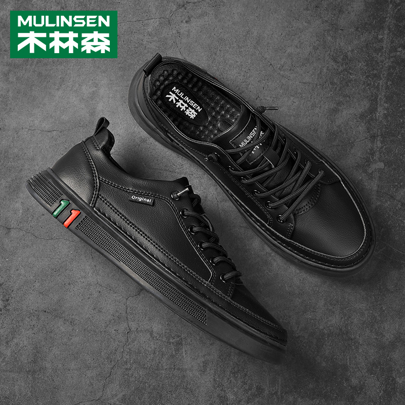 Wood Linson Casual Leather Shoes Men's Inn Trend Korean Version Sports Board Shoes Genuine Leather Summer 100 Hitch Soft Bottom Little Black Shoes