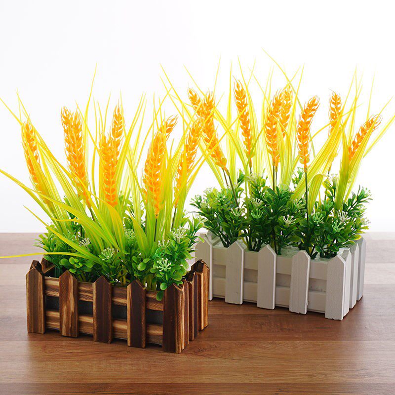 Fake flower potted plant emulated wheat barley bouquet decoration fence plastic flower hotel pendulum fake flower wheat ear decoration flowers
