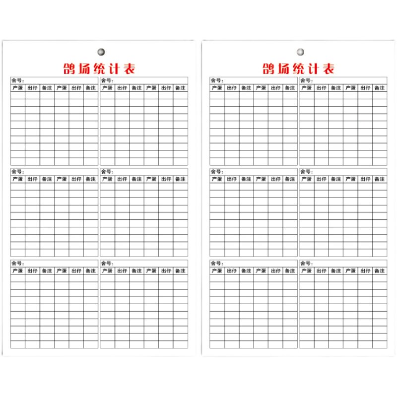 Dove Field Statistical Table Meat Dove Production Registration Pigeon Record Card White Dove Record Card Pigeon Use Card Breeding Card