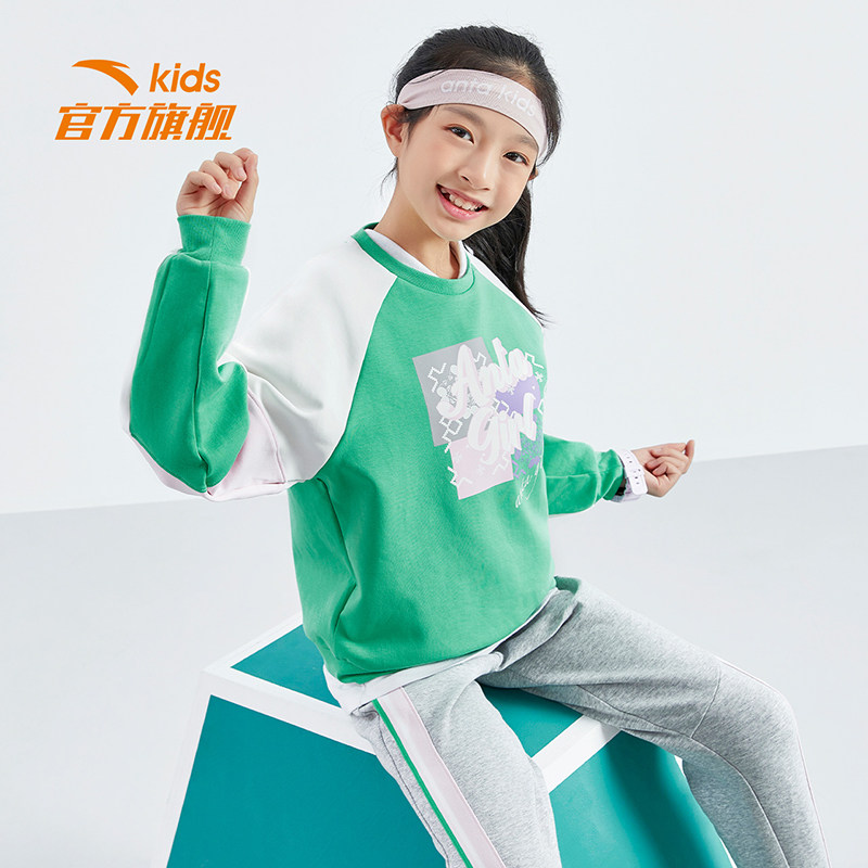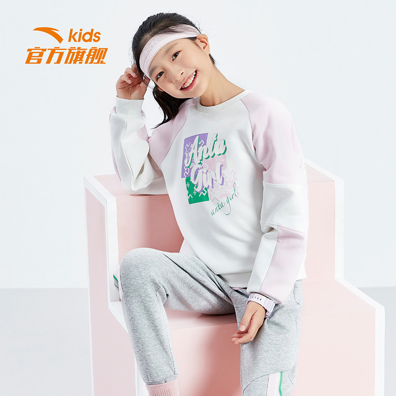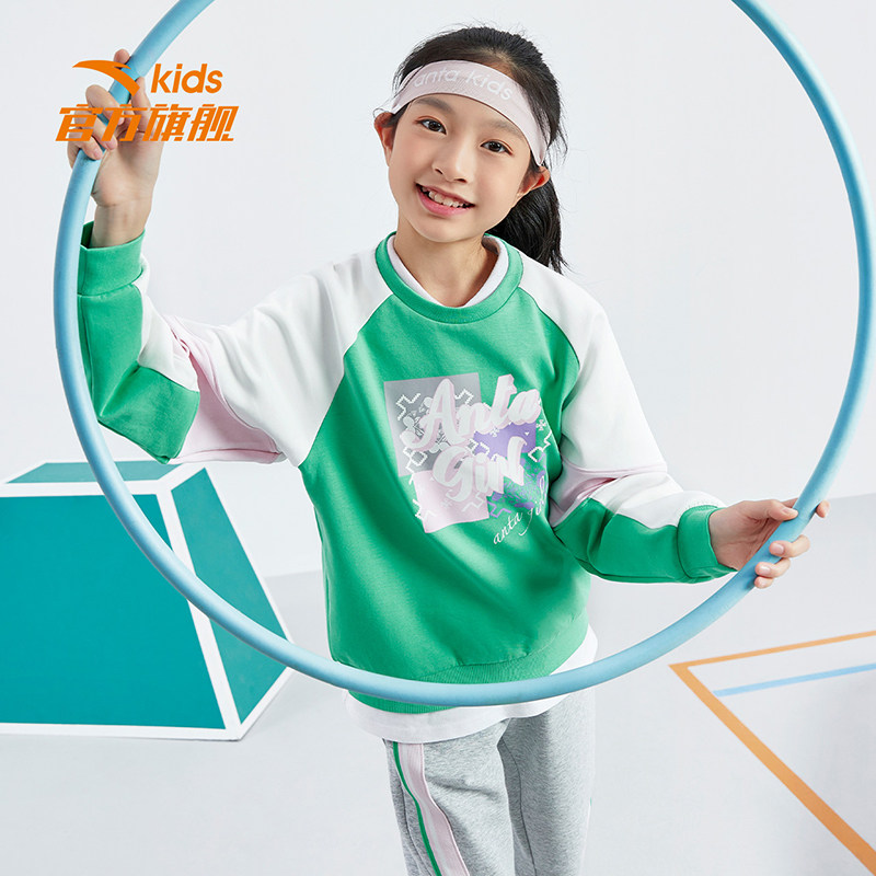Amtap children suit girl's thick T-shirt 2022 Spring new CUHK child Korean version of the round collar jacket jackshirt student foreign pie