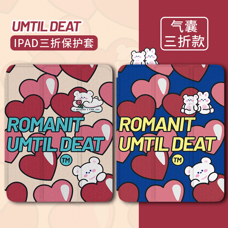Elegant suitable for ipad protection shell 2021 new ipad9 tide card loving mini6 flat cover nine generations 10 2 transparent triple fold with pen slot air4 cartoon Little Bear pro