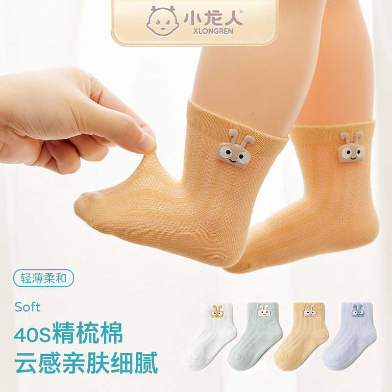 Small Dragon Baby Socks Pure Cotton Spring Autumn Newborn Baby Boy Summer Thin Cotton Middle Stockings Children No Bones Socks Boy
