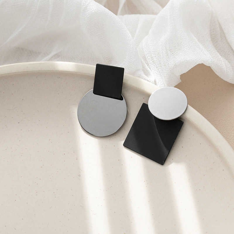 (58)Geometric Contrast Silver Needle (58)Geometric Contrast Padded Ear Clip