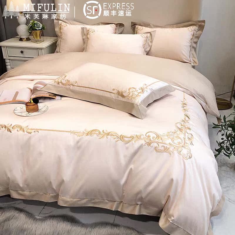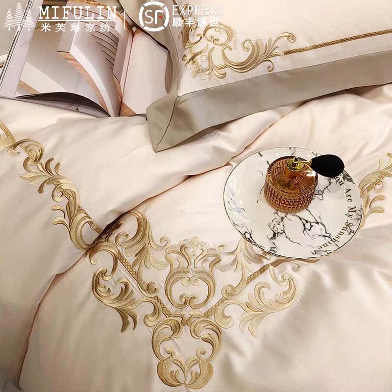 MIFULIN European-style satin four-piece set pure cotton 100-count embroidery naked sleeping bed sheet quilt cover bedding