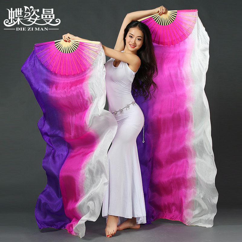 Belly dance fan 1 8 m vertical striped real silk dance long fan 1 pair of performance performance props SZ002