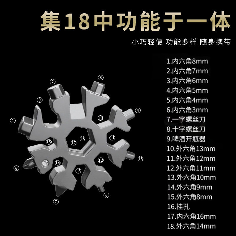 Versatile tool card snowflake multipurpose stainless steel wrench tool combined key buckle portable high carbon steel screwdriver