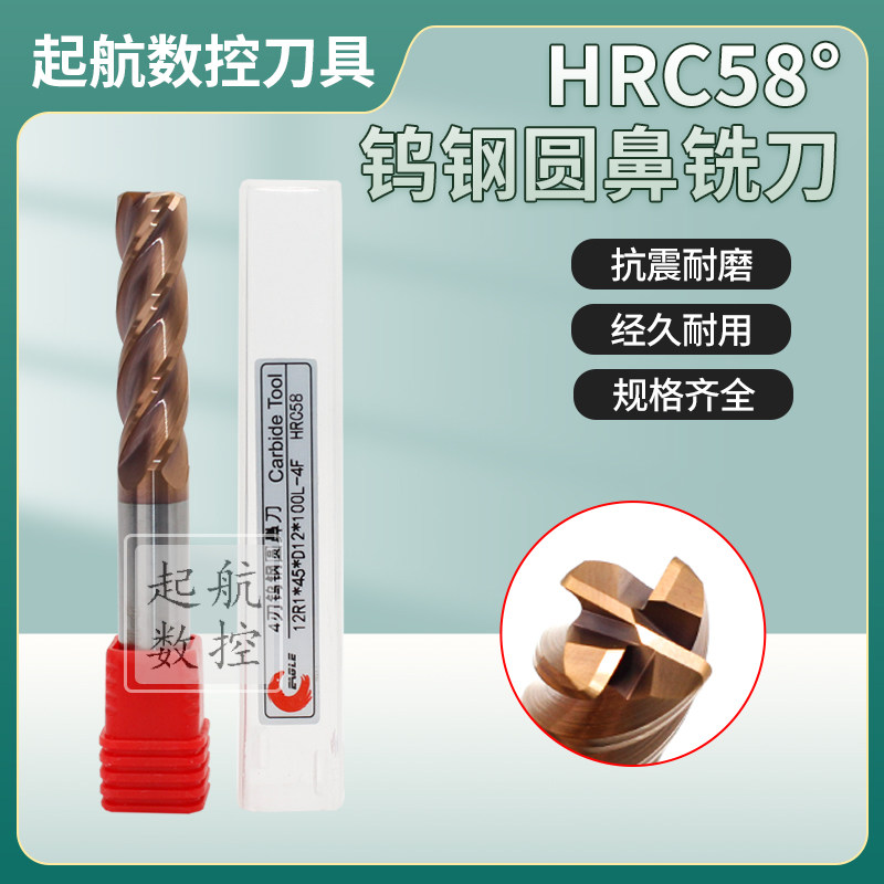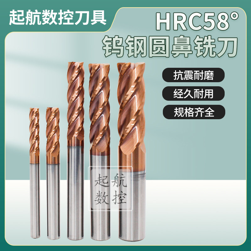 HRC58° Taiwan Yigao tungsten steel round nose milling cutter four-edged 4F-3 4 5 6 8 10 12 14 16 20