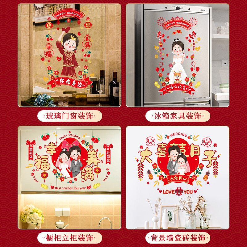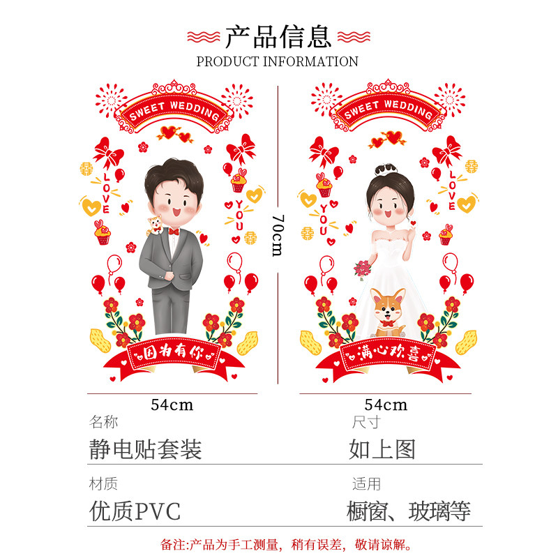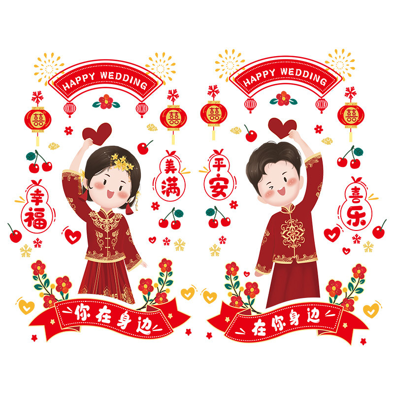 Happy Character Wedding Special Window Flower Static Sticker Wedding House Placement New Room Windows Happy Letdown Cut Paper Window Sticker Wedding Celebration Suit