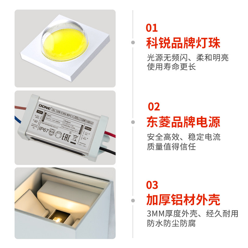 Brand Purui lamp beads · IP67 waterproof · worry-free outdoor use Sifang-Black Shell Warm Light-12W-Human Sensor