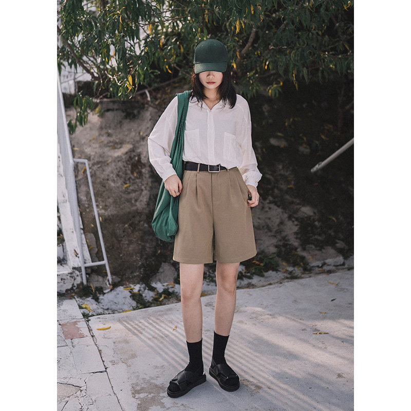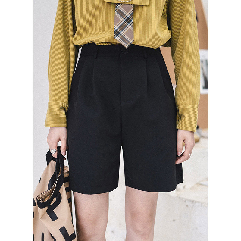 High waist suit 50% Pants Woman Summer New Loose Slim Straight Cylinder 50% Pants Minima Casual Broadlegged Shorts Black