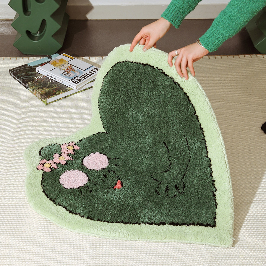 cemee green berries X Baba Dad working with small carpet ground mat Absorbent Adolescent Heart-shaped Bedroom Rental House INS