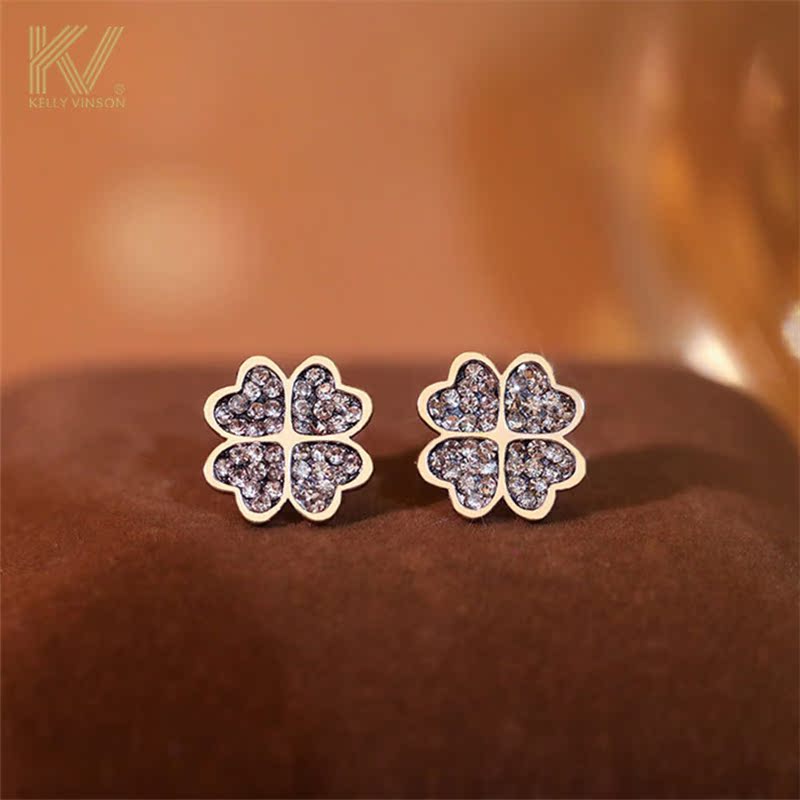 Insert Drilling Lucky Four Leaves Grass Ear Nail Female small crowdDesign High sense Klein Blue Earrings Temperament Pure Silver Ear Ornaments