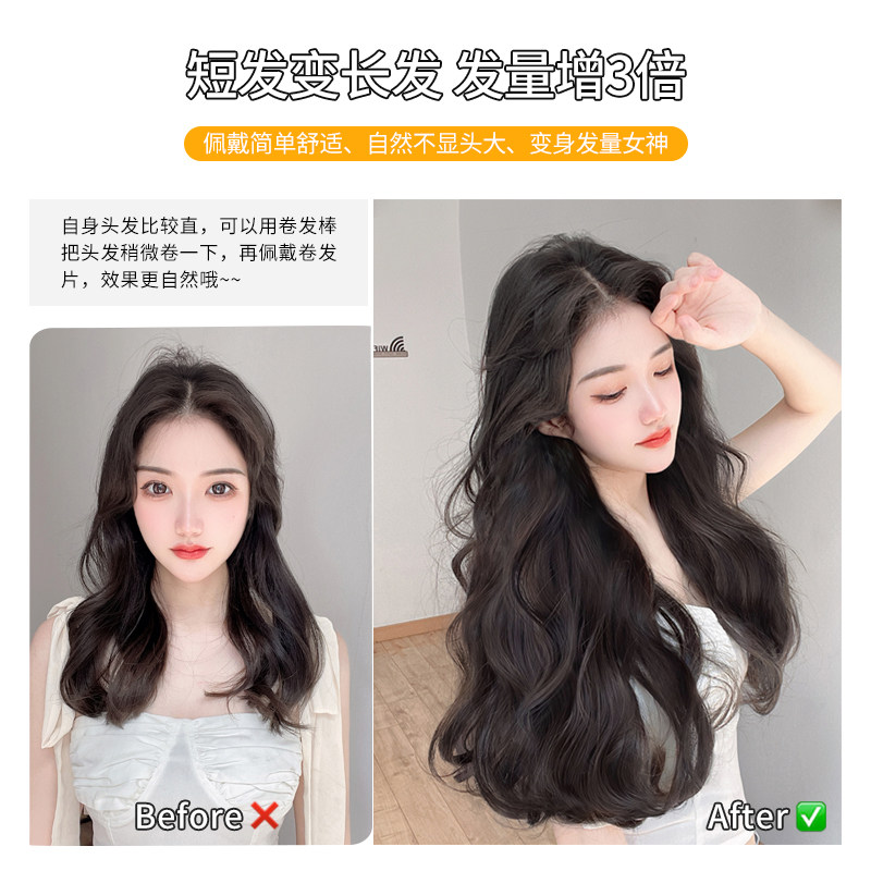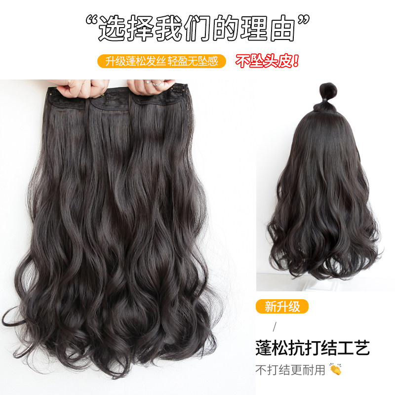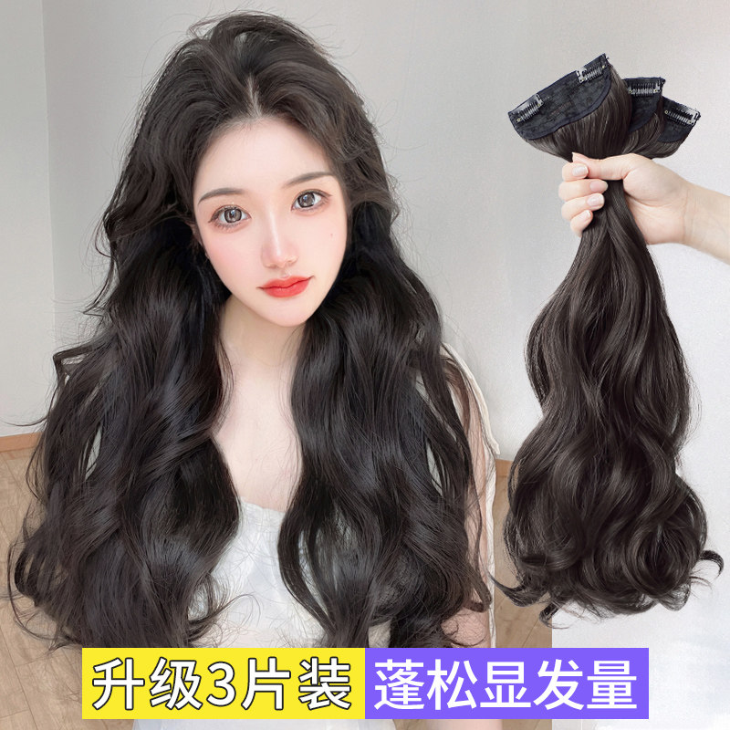 Wave curly hair wig female three-piece hair increase volume of fluffy on both sides of invisible trace simulation hair thin
