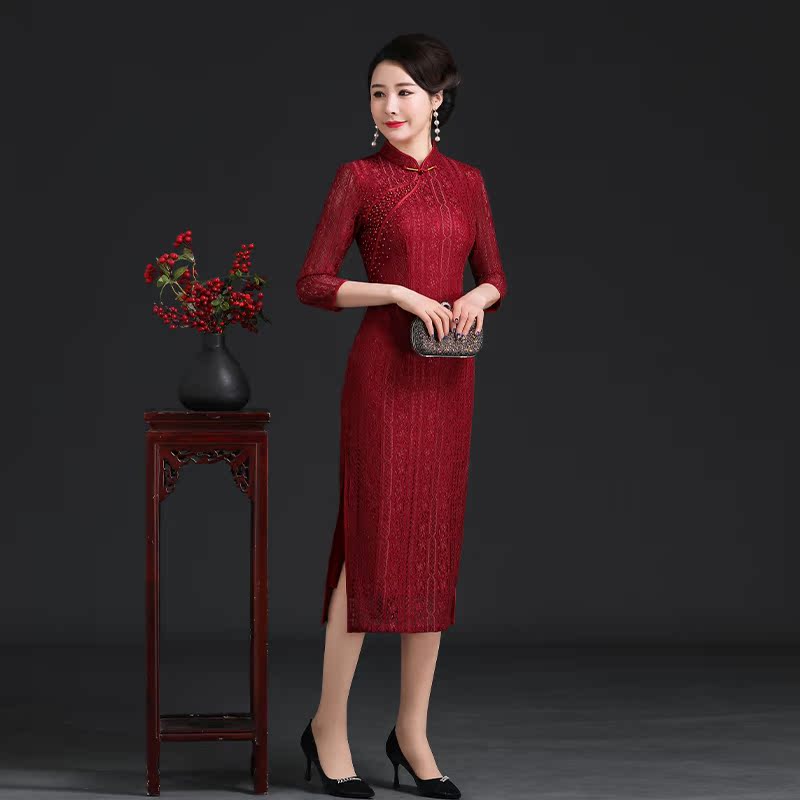 2022 spring new lace embroidered with improved flag-gown, mother-in-law, wedding banquet for a noble woman