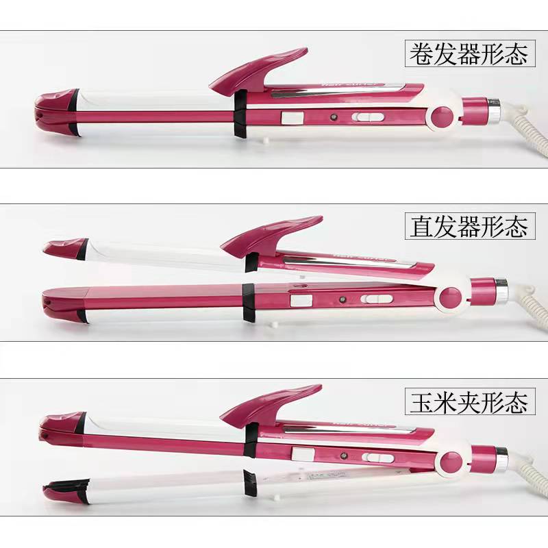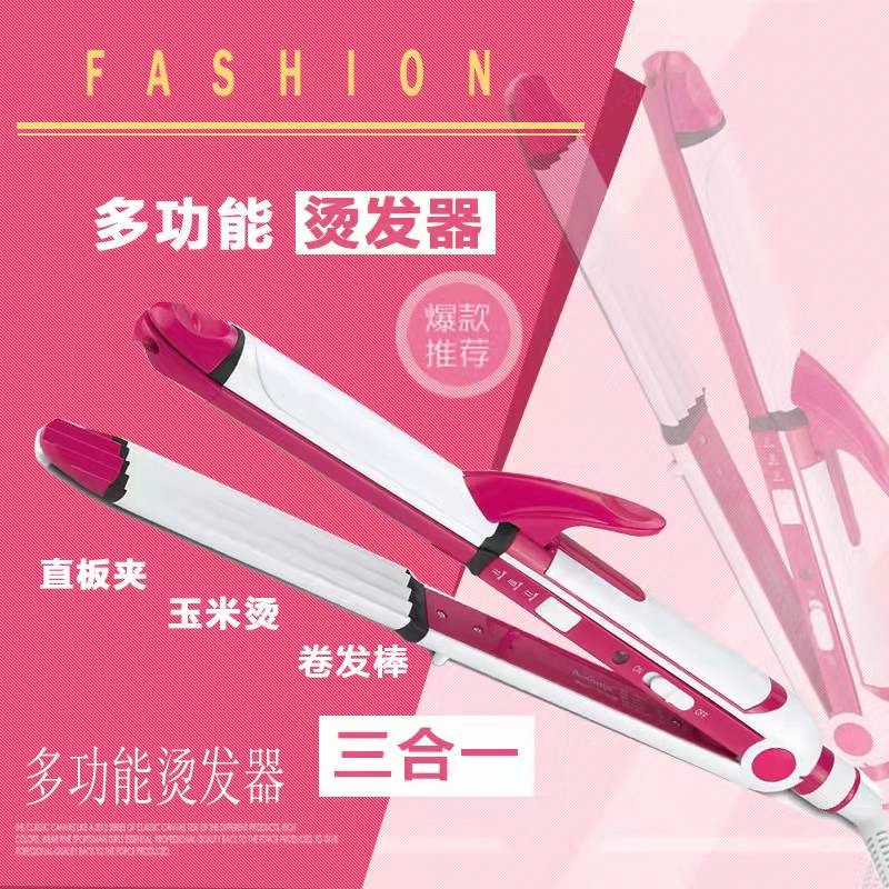 Bright splint three-in-one roll electric rolling stick straightening plate egg roll corn beard fluffy constant temperature bangs household dry and wet dual-use