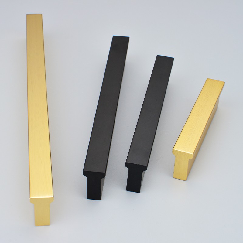 Simple and long light luxury all-match fashion wardrobe handle all kinds of drawer extension 3 holes matte black brushed gold T handle