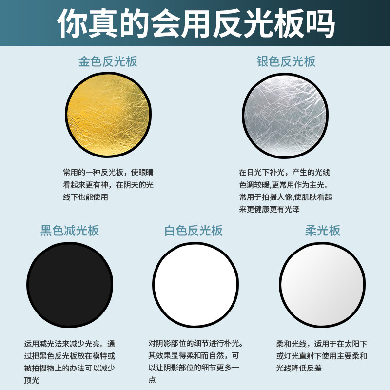 Reflector panel round five all-in-one light panel flexlight board Gloss Board Fold portable small shading plate Photo Bezel