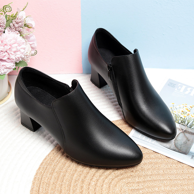 2022 autumn and winter professional women's shoes soft leather work shoes women's long standing without tired feet plus velvet single shoes deep mouth shoes medium heel leather shoes