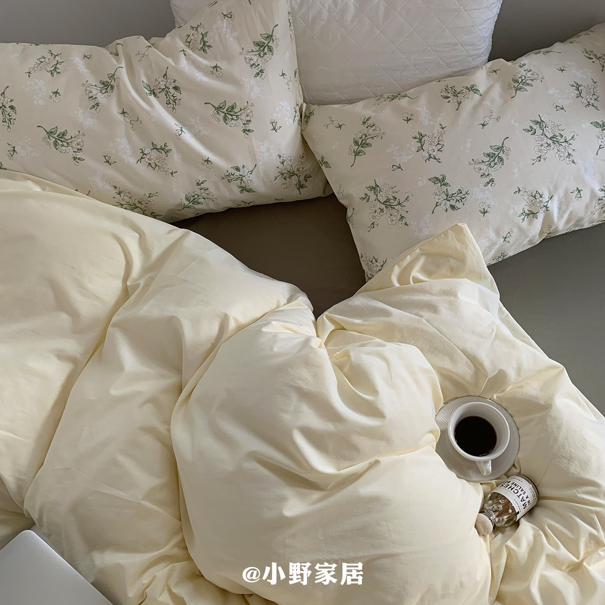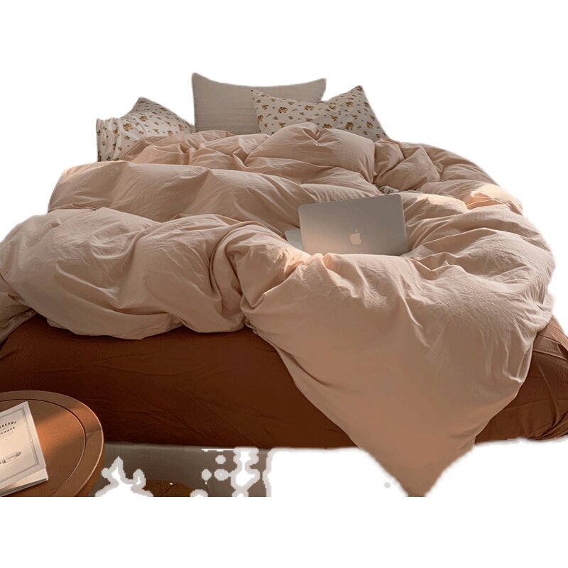 Simple pure cotton small floral four-piece literary and artistic cotton solid-color quilt cover bed sheet fitted sheet 1 5m three-piece bedding