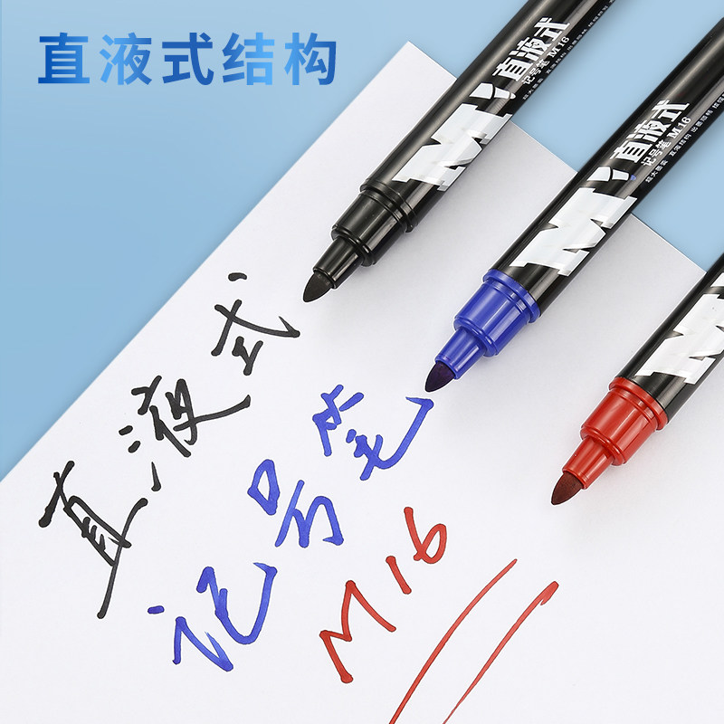 Morning light stationery note pen straight liquid type large capacity red blue black color pen round head single-head plug-in-line pen delivery logistics office business notes smooth wear and wear marker pen-Taobao