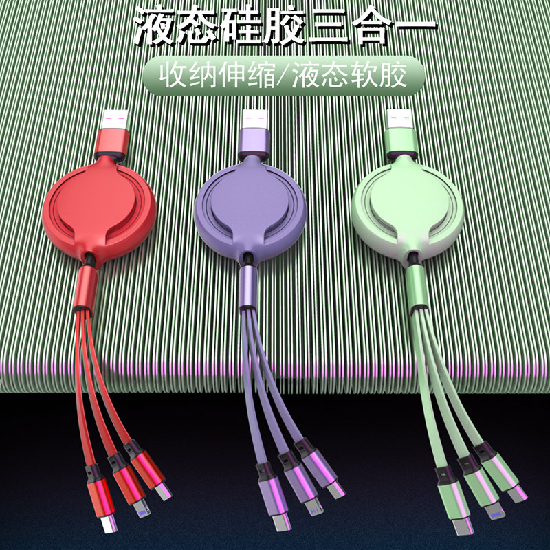 One-to-three charging cable telescopic three-in-one mobile phone fast charging typec suitable for Apple data cable Android custom logo multi-function multi-purpose shrink multi-port universal punch electric bicycle carrying usb car