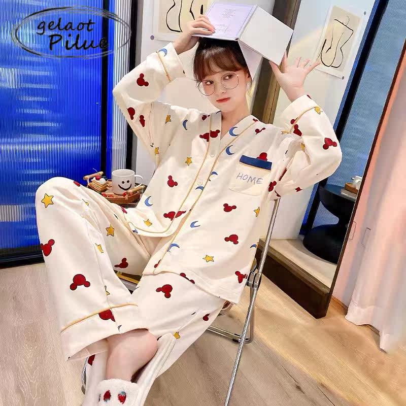 Japanese GP spring and autumn pajamas women's 2022 new cotton long-sleeved outer wear casual sweet and cute home clothes