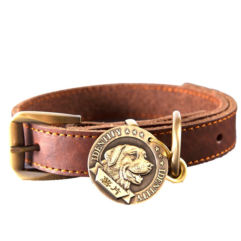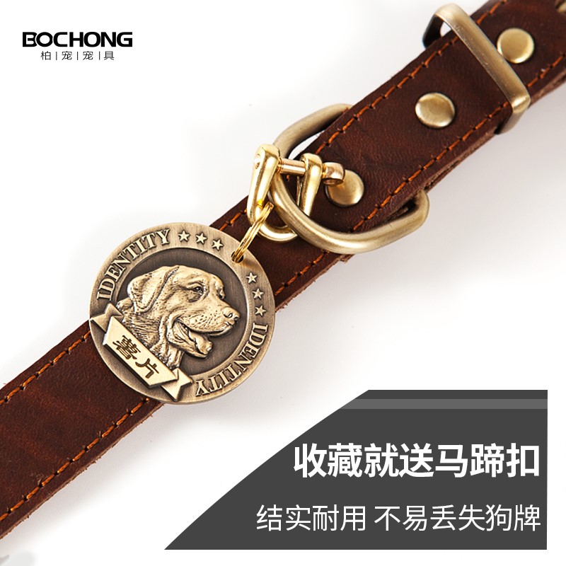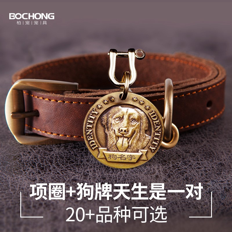 Pooch Bull Leather Collar Custom Lettering dog Neck Collar Medium Sized Large Small Dog Golden Gross Teddy Pet Anti-Lose