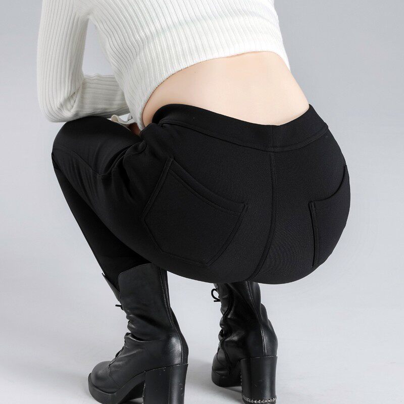 Tightness High Waist Plus Suede Jeans Woman Super Bounty Autumn Winter Style Soft High Elastic Small Feet Big Size Four Sides Knit Fat Mm