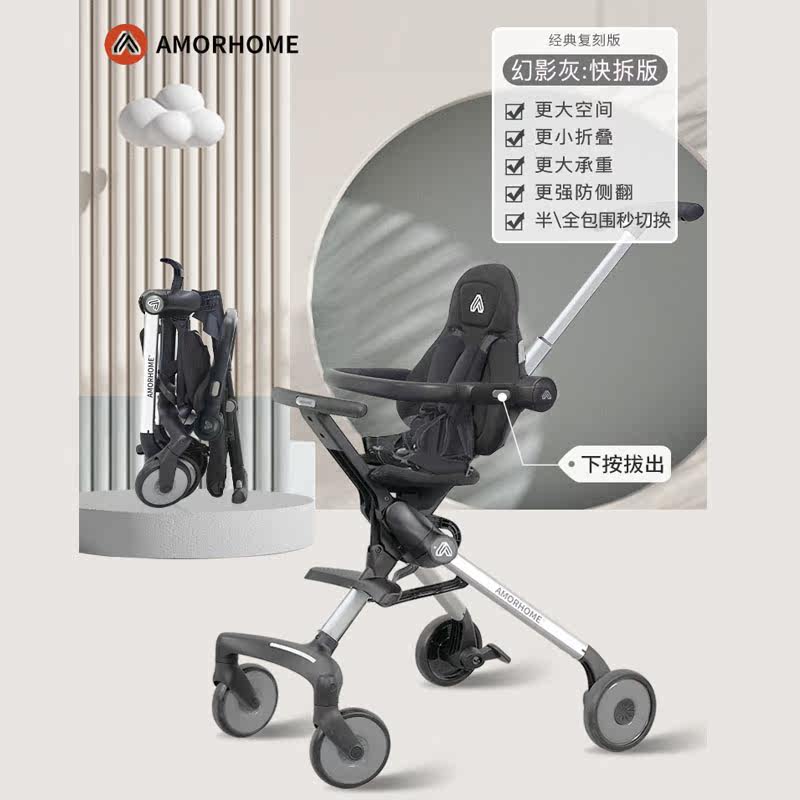 Fully surrounded AMORHOME baby baby baby artifact baby portable folding can sit and lie down trolley baby baby shock absorber