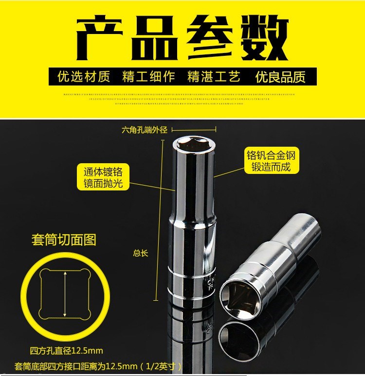 Lengthened electric screwdriver sleeve head 832mm13141819 Number 2730 deepen thin wall deep hole sleeve wrench head