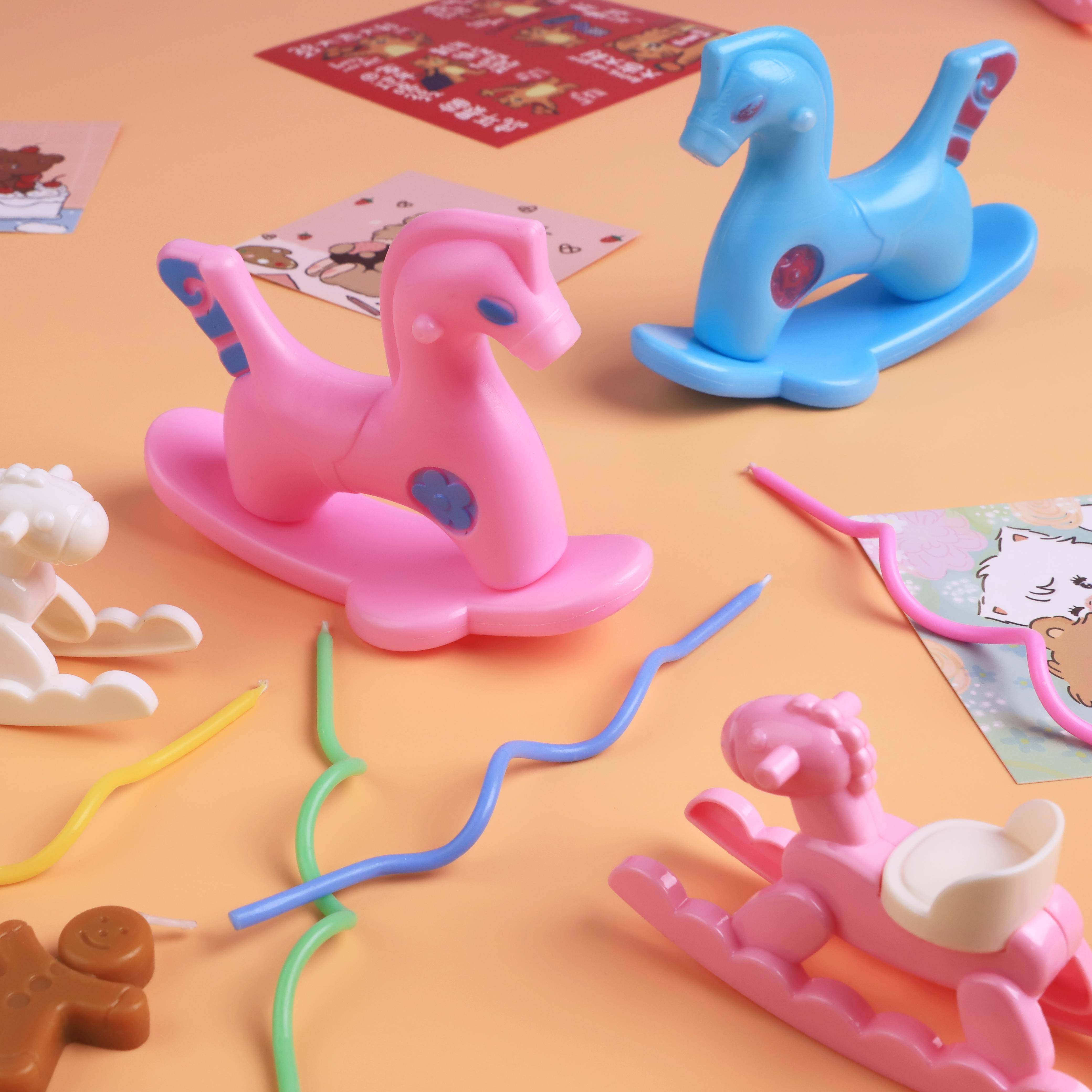 ins large toy rocking horse birthday cake three-dimensional pendulum rocking horse party decoration dessert table plug-in ornaments