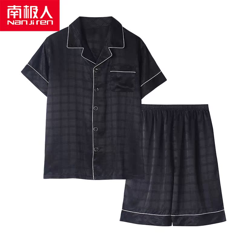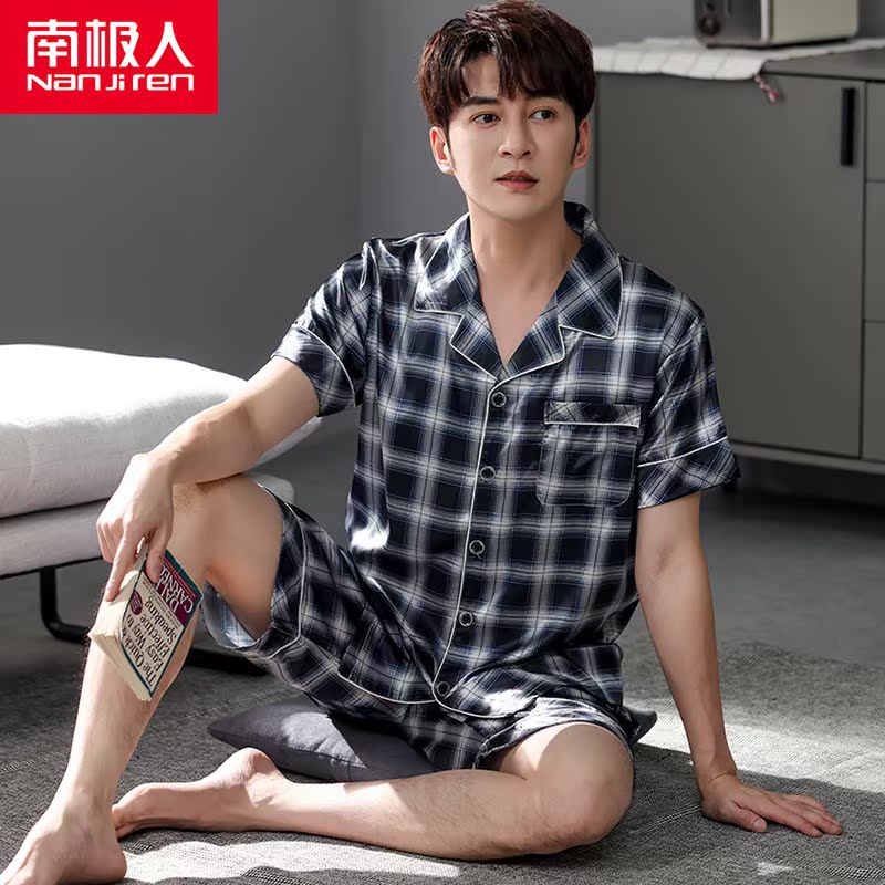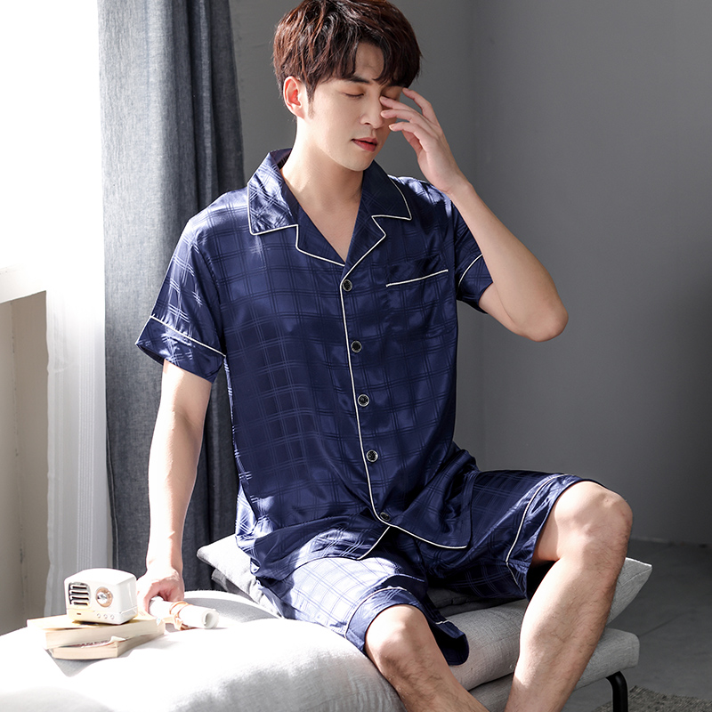 2022 New Sleepwear Men's Summer Ice Silk Short Sleeve Shorts Summer Silk Home Clothing Male Emulation Silk Thin