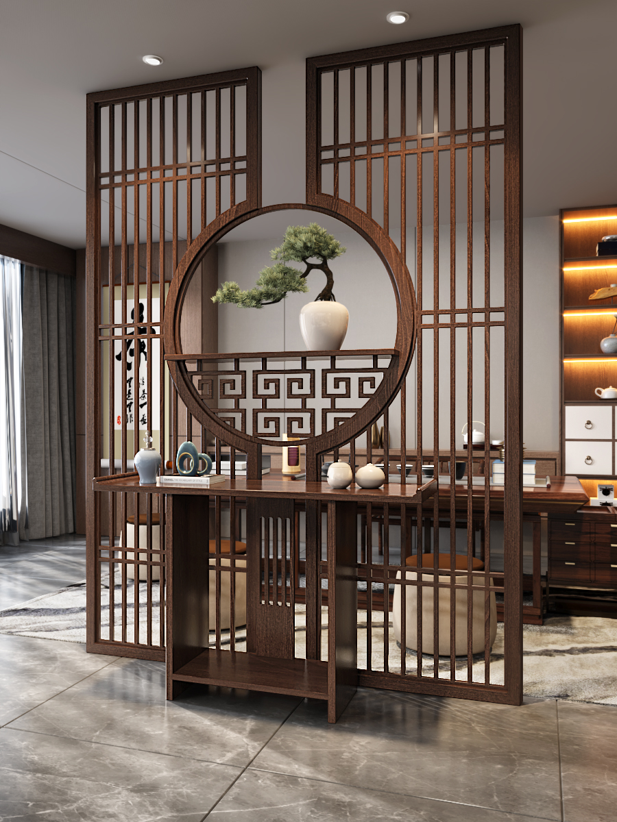 New Chinese screen partition living room simple modern solid wood entry porch grille entry door blocking shelf decoration