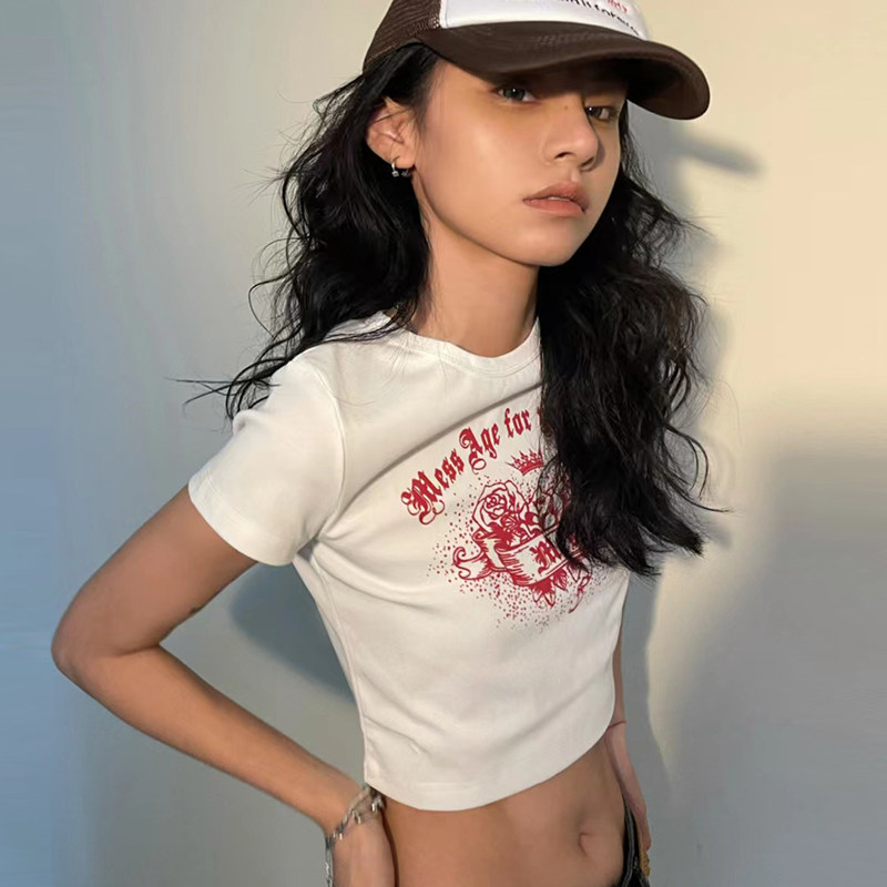 MessAgeLab Summer New American Hot Girl Short Sleeve BM Wind Short a T-shirt for men and women with the same mistress