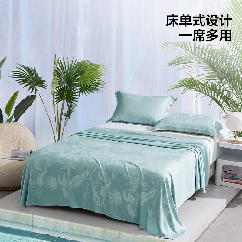 Hibiscus Blossom Jacquard Bamboo Fiber Soft Mat Three-piece Set (230*250cm1518m bed) Hibiscus Blossom Jacquard Bamboo Fiber Soft Mat Three-piece Set (256*25cm