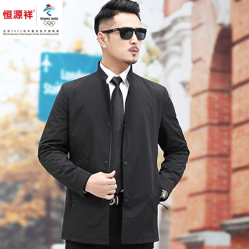 Hengyuan Xiang Group 2022 Spring Autumn New Medium Long Version Jacket Men's Jacket Middle-aged Men Business Casual Blouse Men