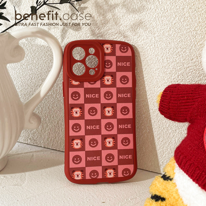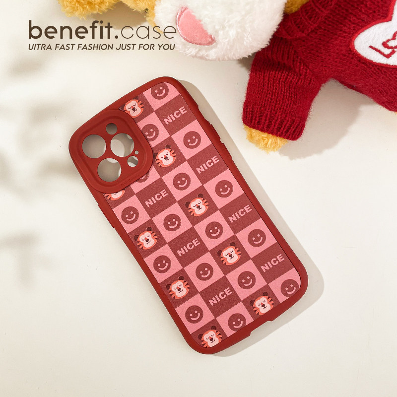 Benefit Japan Korea Red Chess Smiling Face Tiger Head Applies Apple 13promax Phone Protection Shell iphone12mini