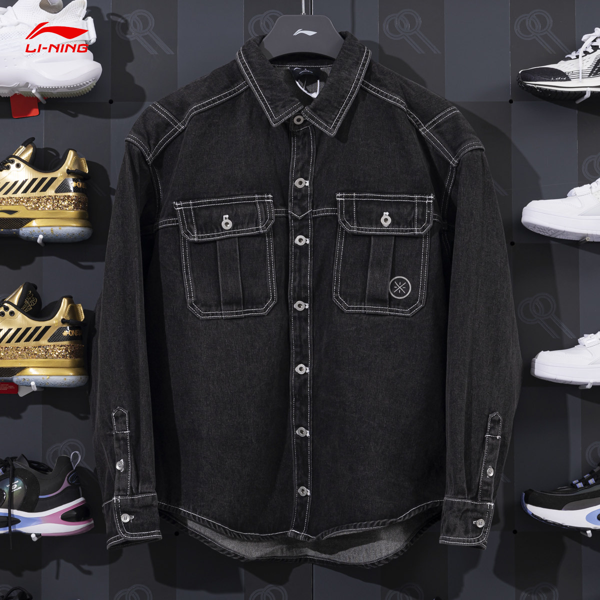 China Li Ning Cowboy Jacket Man 2022 Spring Wade Way Guochao Sweatshirt washed jacket AJDR243-1