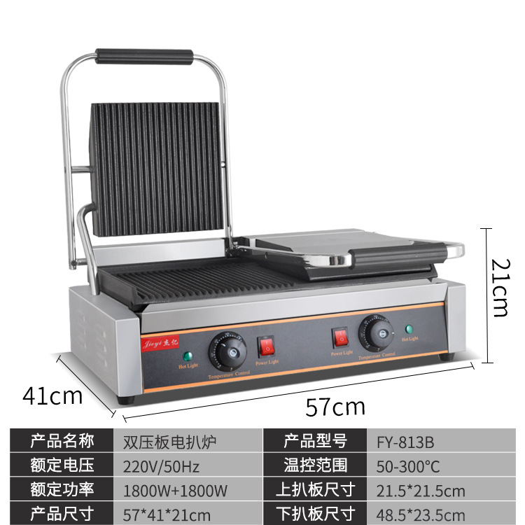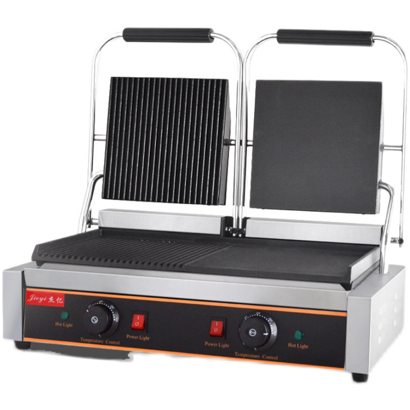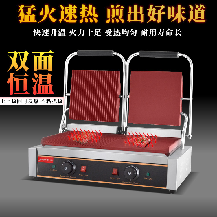 Commercial Electric Hot Roast Duck Intestine Machine Pressure Plate Pickpocket Furnace Panini Machine Half-Pit Semi-Flat Triveal Roast Steak Grilled Steak Machine