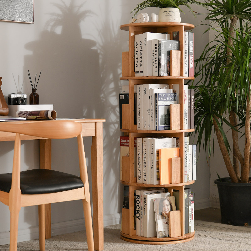 Children solid wood rotating bookshelves 360-degree minimalist containing plotter shelf floor home Easy student bookcase